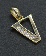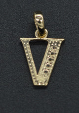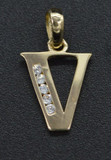 14K Yellow Solid Gold Created Diamond Initial Letter V Pendant +18" Chain