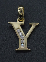 Created Diamond Initial Letter Y Pendent 14K Solid Yellow Gold A-Z is available