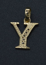 Created Diamond Initial Letter Y Pendent 14K Solid Yellow Gold