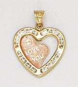 #GA17 14K Solid Yellow & Rose Gold CZ " i Love You " Heart Shape Pendant
