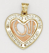#GA27 14K Solid Yellow & Rose Gold CZ "LOVE" word Heart Shape Pendant