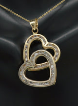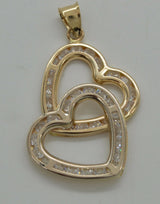 NEW 14k Solid Yellow Gold with two entwined Heart cz Pendant +18 Chain