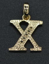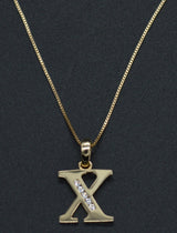 PM109 14K Yellow Solid Gold Created Diamond Initial Letter X Pendant +18" Chain