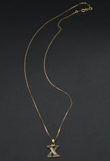 14K Yellow Solid Gold Created Diamond Initial Letter X+ 18" Chain Necklace