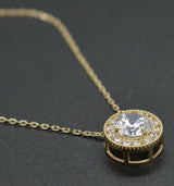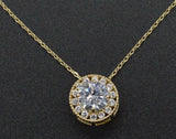 PM20 Created Diamond Halo Solitaire Round Cut Pendent 0.80ct 14k Yellow Gold