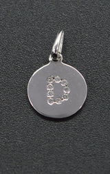 Round Cut Initial Letter D Lab Diamond Pendant 14K White Gold 0.18ct Medal Charm