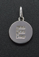 Round Cut Initial Letter E Lab Diamond Pendant 14K White Gold 0.18ct Medal Charm