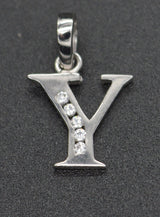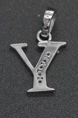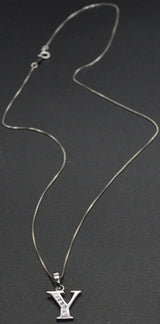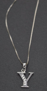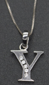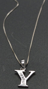 PM96 14K White Solid Gold Created Diamond Initial Letter Y + 18" Chain Necklace