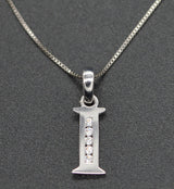 14K White Solid Gold Created Diamond Initial Letter I + 18" Chain Necklace
