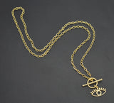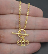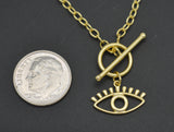 Real 14K Solid Yellow Gold 18" Evil Eye Shape Outline Toggle Chain Necklace 3.6g