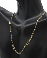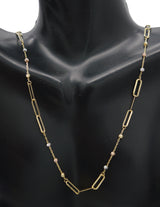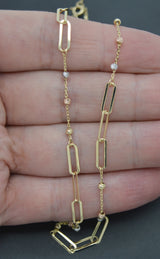 Real 14K Tri-color Gold Beads 16/18" Paperclip & Cable Chain Necklace 3.3 grams