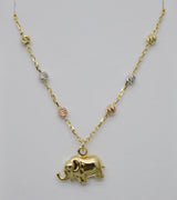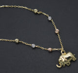 Real 14K Tri-color Gold Beads 16/18" Shiny Elephant Charm Necklace