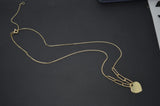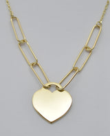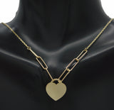 Real 14K Yellow solid Gold 16/18" Heart Charm Paperclip & Cable Chain Necklace