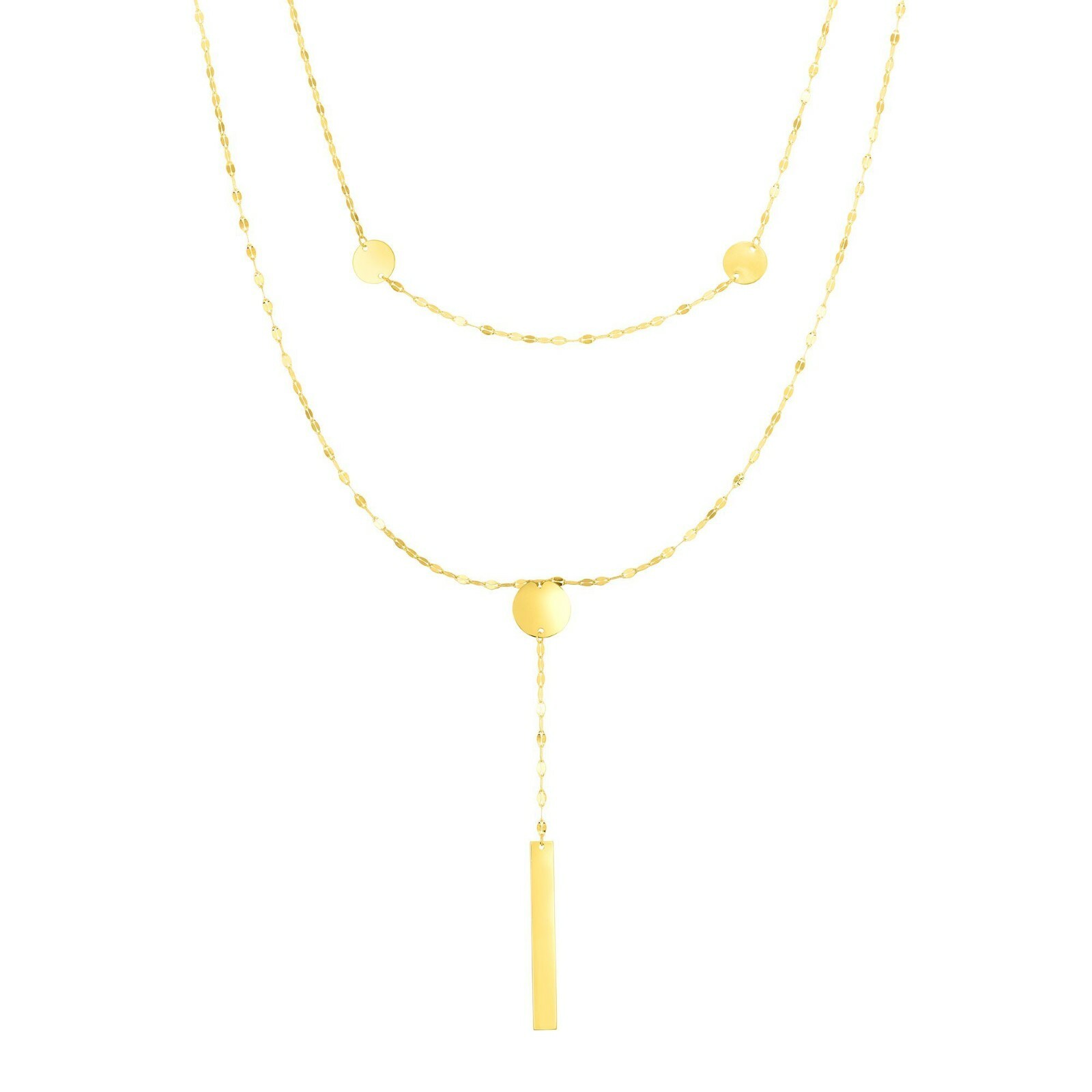 Real 14K Yellow Gold 17" Polished Discs Mirror Chain 2.6gr Multi-Strand Necklace