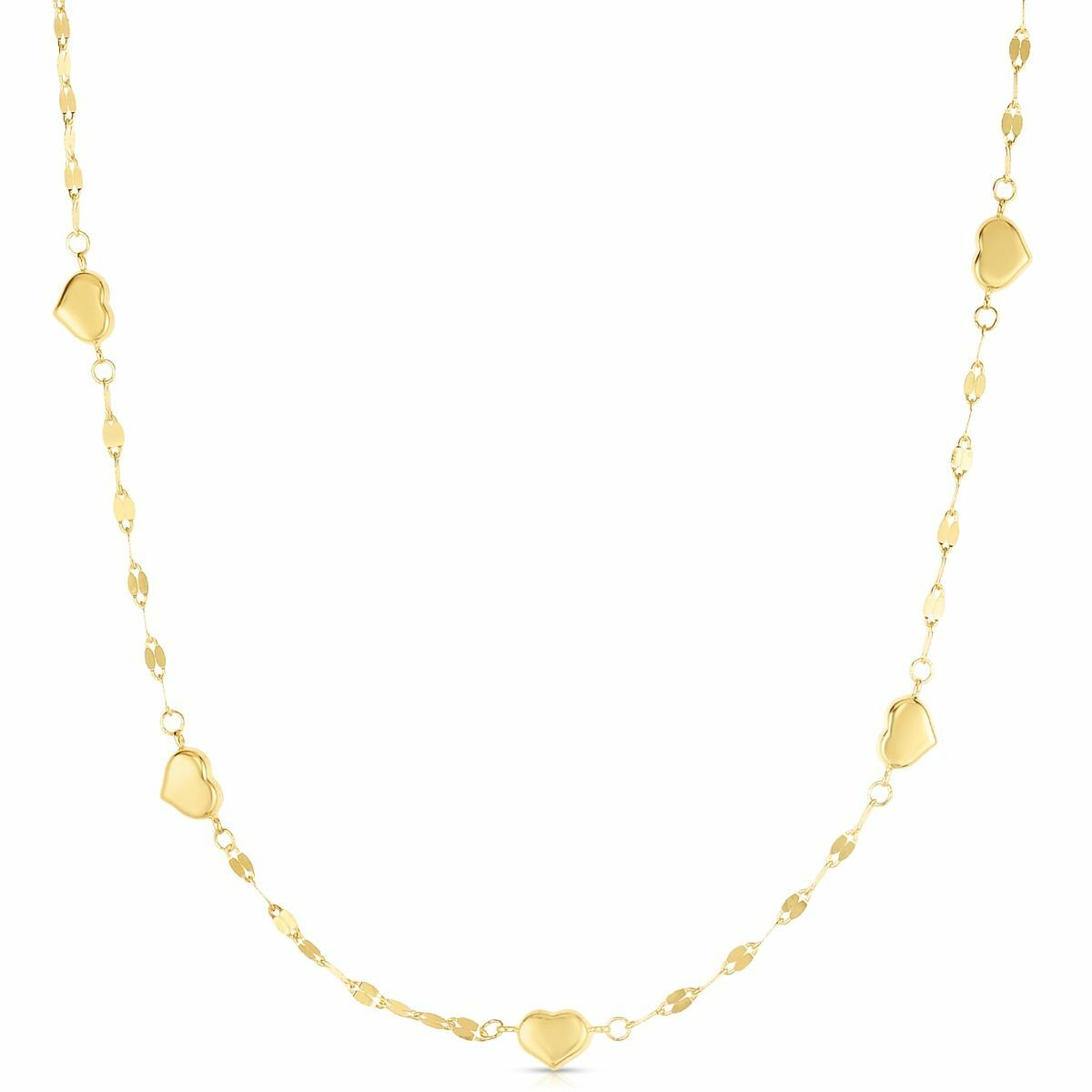 This is so cute Real 14K Yellow Gold 18" Mirrored Heart Station Chain 1.9gr Charm Necklace. The heart charm necklace makes for the perfect gift for her. It is so lightweight and fashionable so don't miss out on this cutie! You can never go wrong with our necklace as it makes the ideal gift for any occasion.
