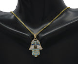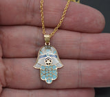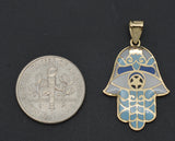 Real 14k Yellow Gold Enamel Hamsa Black Star Pendant + 18" Chain