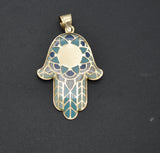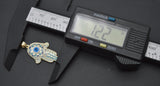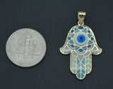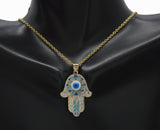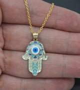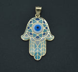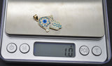 Real 14k Yellow Gold Ocean Blue Enamel Hamsa Evil Eye Pendant + 18" Chain