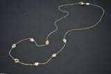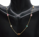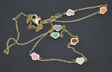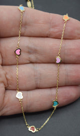 Real 14K Yellow Solid Gold Shiny Multicolor Enamel Hearts Charm Necklace 16"-18"