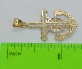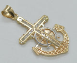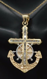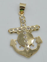 14k Solid Yellow Gold Anchor cross Religious cz Pendant +18 Chain #ga92