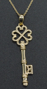 14K Solid Yellow Gold Key Pendant Charm