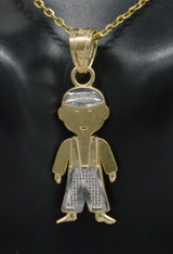 Boy Charm pendant 14kt two-tone Gold + 18" cable chain