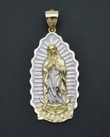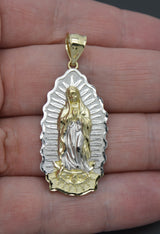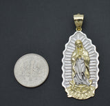 Real 10K Yellow-White Gold Lady Guadalupe Virgin Mary Medallion Pendant 4.2gr