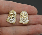 200ct Round and Jesus hat Diamond Stud Earrings 10k Solid Yellow Gold