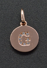 14K Rose Gold cz Round Cut Initial Letter G Pendent 0.18ct