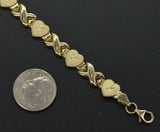 10k Solid Yellow Gold Hearts & Kisses Bracelet 71/2'' 8mm 5.1gr