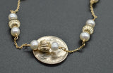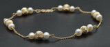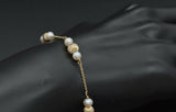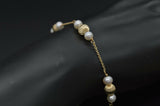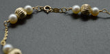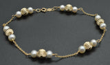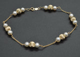 14K Solid Yellow Gold Cultured Pearl & Corrugated Ball Bead Bracelet 8"