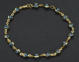14K Yellow Solid Gold 6" Children's New blue Color Evil Eye Bracelet 2.3g