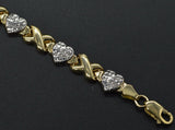 AS46 14k Solid Two-Tone Gold Hearts & Kisses Bracelet 71/2'' 8mm 5.7gr