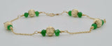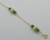 BN173 NEW 14K Solid Yellow Gold Green Emerald & Corrugated Ball Bead Bracelet 7"