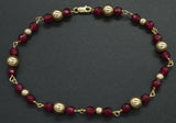 NEW 14K Solid Yellow Gold and Natural Ruby Round Bead Bracelet 8" are classy yet affordable! These charming bracelets will add a touch of whimsy to your costume jewelry collection and can be the highlight of any outfit.