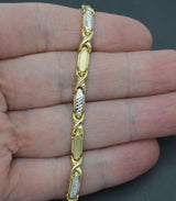 Real 10K Two-Tone Gold 7" Diamond Cut 4.7mm Tennis "X" Link Bracelet 4.5gr