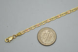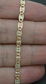 Real 10k Tri-Color Gold 3.5mm Valentino link Diamond Cut Bracelet 7"