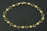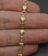 Real 10k Yellow Gold brushed & Diamond Cut Heart love Bracelet 5.3mm 71/4''