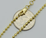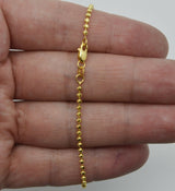 Real 10K Yellow Gold Moon Cut Bead Ball Chain Bracelet 2mm 6''- 7 1/ 4'' 2.9gr