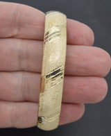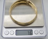 Real 10K Yellow Solid Gold Shiny Stripe Cut Bangle Bracelet 12mm 7.6gr 7"-8"