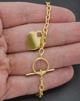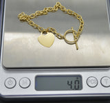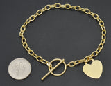 Real 14K Solid Yellow Gold 7.6" Heart Toggle Tag Oval Chain Charm Bracelet 4.0gr