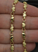 Real 14K Yellow Gold 5.3mm Puffed Heart Link Ankle Bracelet 9''-10''