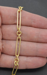 Real 14K Yellow Gold Shiny 7 1/4" Paperclip Link Chain Textured Bracelet 3.8grams