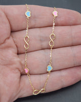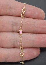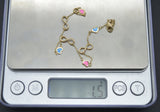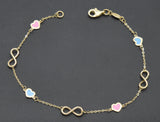 Real 14K Yellow Solid Gold 7" Shiny Infinity Multicolor Enamel Hearts Bracelet