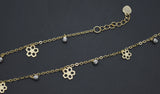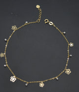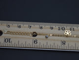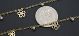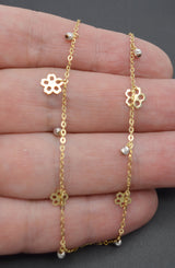 Real 14k Yellow Solid Gold Dangling Flowers Diamond cut Anklet Bracelet 9-10''