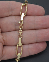 Real 14K Yellow Solid Gold Shiny 7.5" Rolo Interlocking Linked Bracelet 5 gr