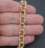 Real 14K Yellow Solid Gold Shiny 7.8" Bead Cuban Charm Linked Bracelet 10.0 gr