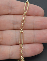 Real 14K Yellow Solid Gold Shiny 8" Paperclip With Rolo Linked Bracelet 3.4 gr