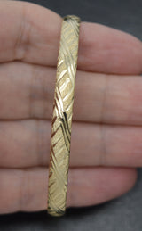 Real Solid 10K Yellow Gold 6mm Shiny X Design Charm Bangle Bracelet 7"- 8"