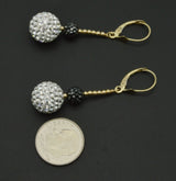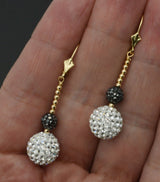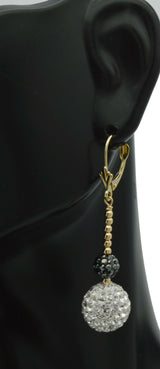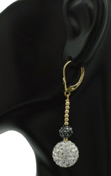 14k solid Yellow Gold 12mm Crystal Ball Drop black & white Lever Back Earring