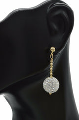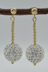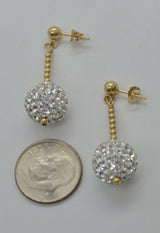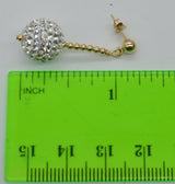 14k solid Yellow Gold 12mm Crystal Pave Ball Drop Earrings